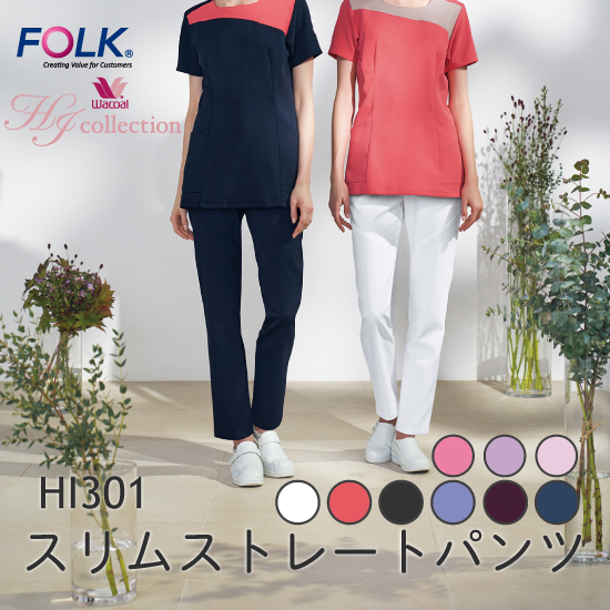 美しいシルエットとデザイン、女性に嬉しい機能性が充実した、ワコールのスクラブシリーズに合わせて履ける、スリムストレートパンツ。