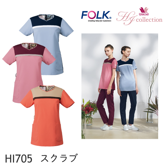 レディース スクラブ(Wacoal) HI705 ローズ×オークル×バーガンディ フォーク