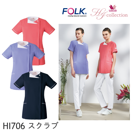 レディース スクラブ(Wacoal) HI706 ダークネイビー×ホワイト フォーク