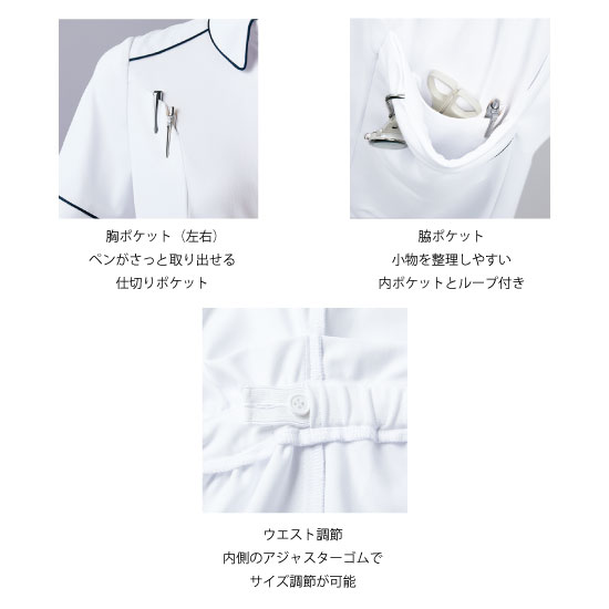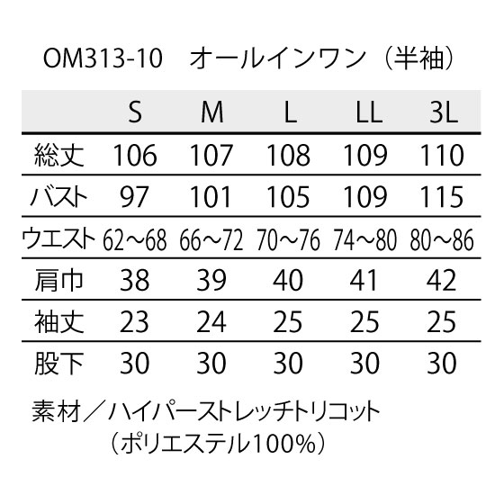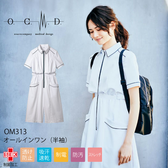 レディース オールインワン (半袖)OM313 ホワイト O.M.C.D. 住商モンブラン