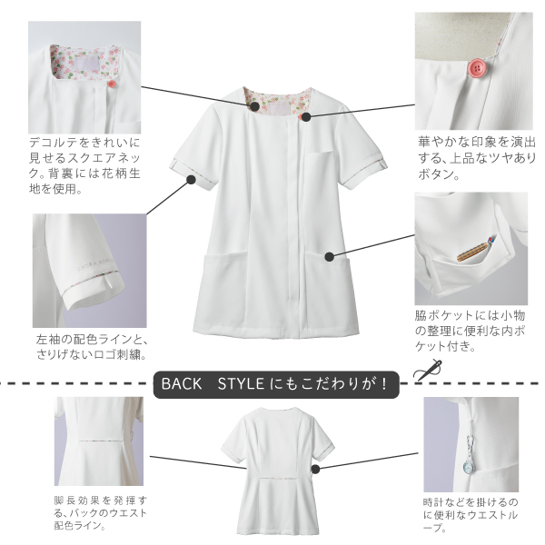 レディス ナースジャケット スクラブ(ローラ アシュレイ) LW812 オフホワイト/ピンク