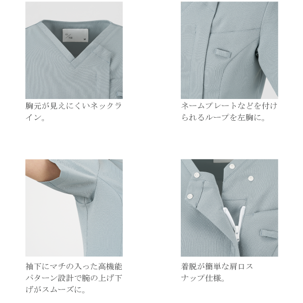 【6月26日発売!】UM500 ブルーグレー uka ネイル ウカ 住商モンブラン 化粧品 ハンドケア スクラブ メディカル ジップ レディース ウェア ナース 看護 介護 医療 かわいい 女性 医者 半袖