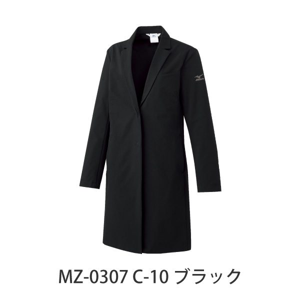 MZ-0307 C-10 ブラック ドクターコート 長袖 レディース 医療用 白衣 看護師 医師 ドクター クリニック 病院 介護 MIZUNO