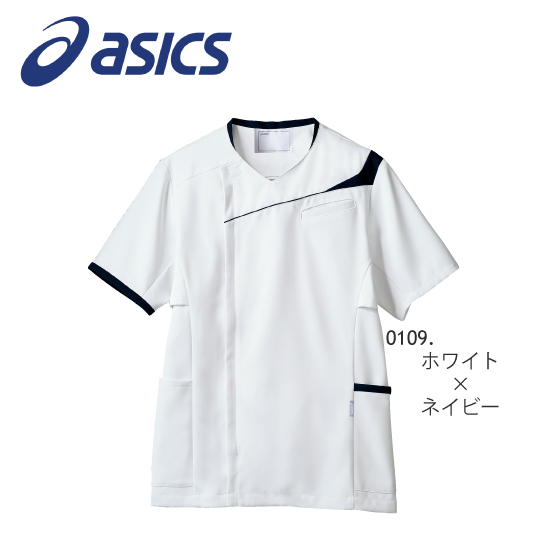 メンズ スクラブ(アシックス) CHM854 ホワイト×ウォームブルー 住商モンブラン