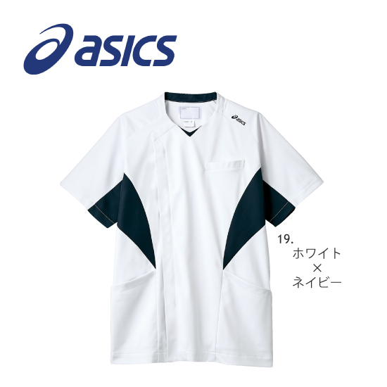メンズ スクラブ(アシックス) CHM857 ホワイト×ネイビー 住商モンブラン