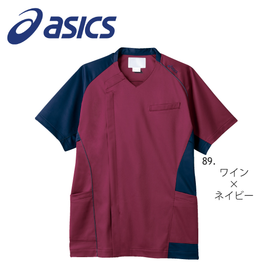 メンズ スクラブ(アシックス) CHM855 ワイン×ネイビー 住商モンブラン