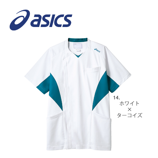 メンズ スクラブ(アシックス) CHM857 ホワイト×ターコイズ 住商モンブラン