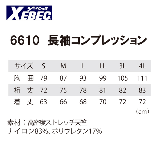 ジーベック/6610/長袖/コンプレッション/インナー/シャツ/消臭/吸汗速乾/空調服/作業服/現場服