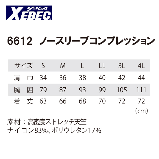 ジーベック/6612/ノースリーブ/タンクトップ/ランニング/コンプレッション/インナー/シャツ/消臭/吸汗速乾/空調服/作業服/現場服
