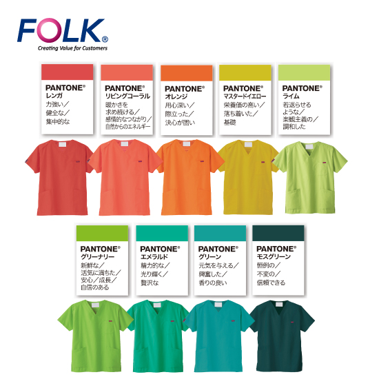 レディース スクラブ(PANTONE) 7000SC レッド フォーク