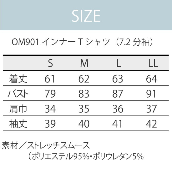 レディース インナーTシャツ(7.2分袖)OM901 ネイビー O.M.C.D. 住商モンブラン