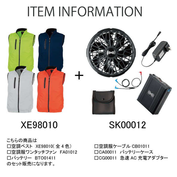 空調服/XE98010/SK00012/バッテリー/ファン/ベスト/セット/ジーベック/日本電産/スポーツ/作業服/アウトドア/レジャー