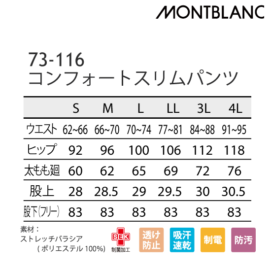 ウエスト両脇ゴムタイプで、73-118シリーズに比べるとしっかりとした生地を使用。