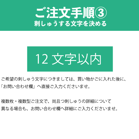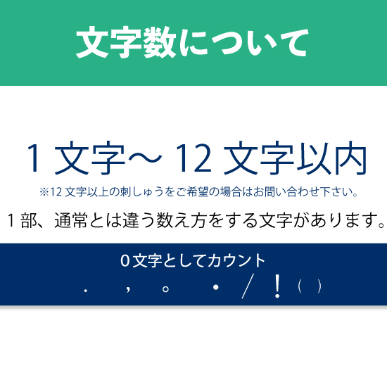 ※社名や個人ネームなどの刺繍を【12文字まで(1行)一律300円】でお受けいたします。