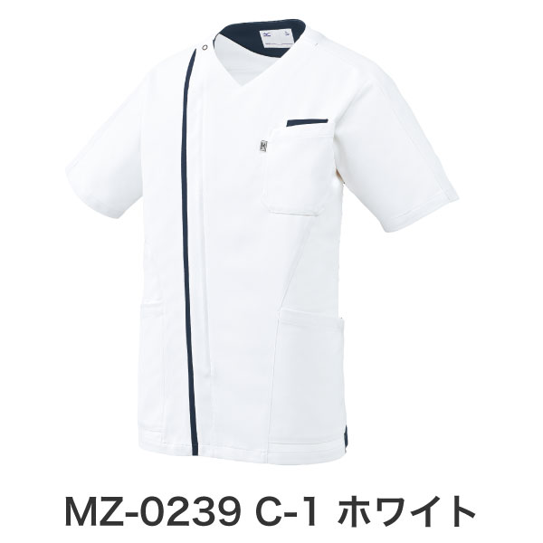 MZ-0239 C-1 ホワイト スクラブ 半袖 メンズ 医療用 白衣 看護師 医師 ドクター クリニック 病院 介護 MIZUNO