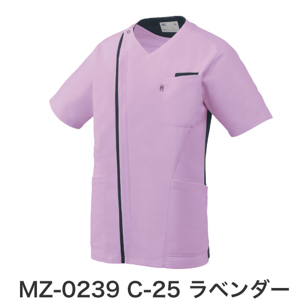 MZ-0239 C-25 ラベンダー×ネイビー スクラブ 半袖 メンズ 医療用 白衣 看護師 医師 ドクター クリニック 病院 介護 MIZUNO