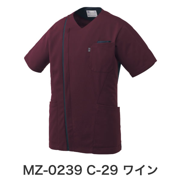 MZ-0239 C-29 ワイン×ネイビー スクラブ 半袖 メンズ 医療用 白衣 看護師 医師 ドクター クリニック 病院 介護 MIZUNO