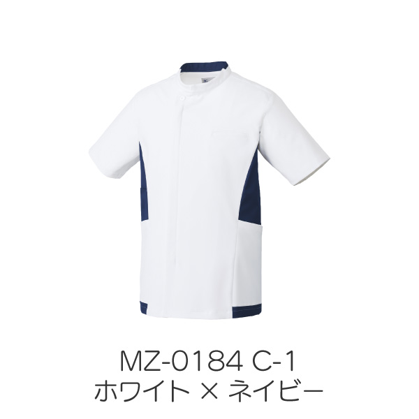 MZ-0184 C-1 ホワイト×ネイビー ケーシージャケット 半袖 メンズ 医療用 白衣 看護師 医師 ドクター クリニック 病院 介護 MIZUNO