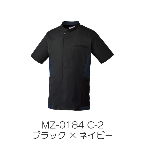 MZ-0184 C-10 ブラック×ネイビー ケーシージャケット 半袖 メンズ 医療用 白衣 看護師 医師 ドクター クリニック 病院 介護 MIZUNO