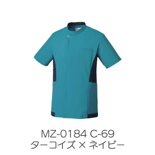 MZ-0184 C-69 ターコイズ×ネイビー ケーシージャケット 半袖 メンズ 医療用 白衣 看護師 医師 ドクター クリニック 病院 介護 MIZUNO