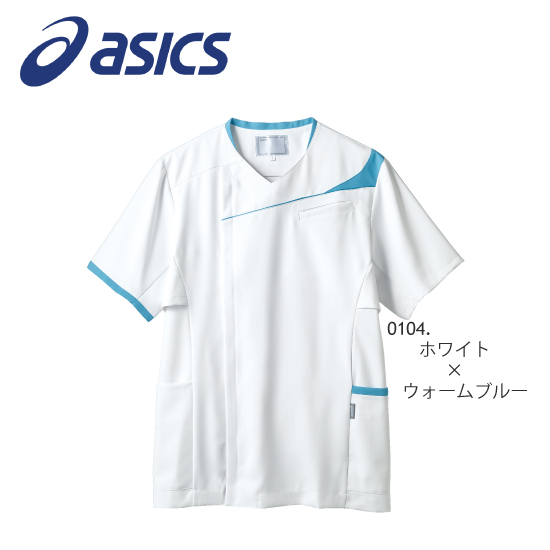 メンズ スクラブ(アシックス) CHM854 ホワイト×ウォームブルー 住商モンブラン