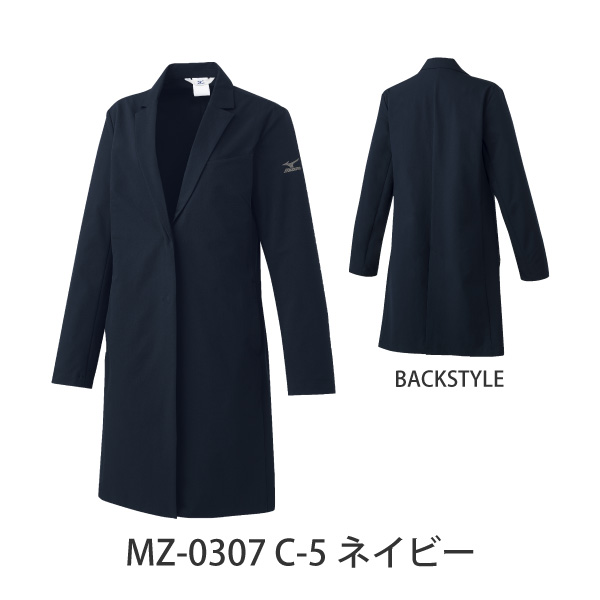 MZ-0307 C-5 ネイビー ドクターコート 長袖 レディース 医療用 白衣 看護師 医師 ドクター クリニック 病院 介護 MIZUNO