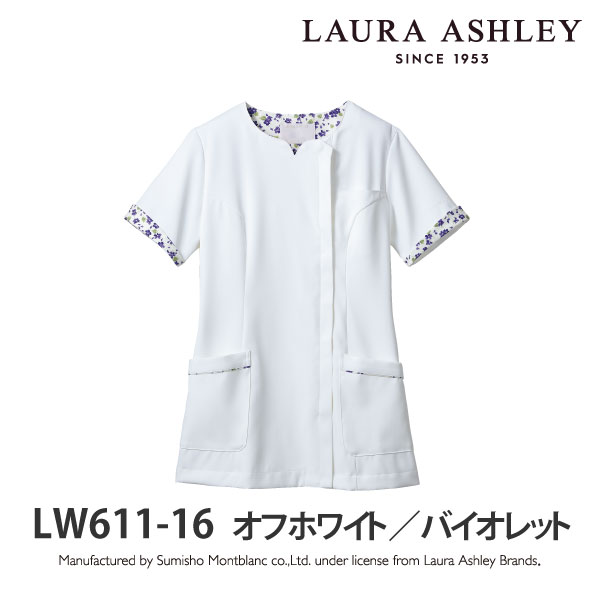 レディース スクラブ(ローラ アシュレイ) LW611 オフホワイト/バイオレット 【送料無料】