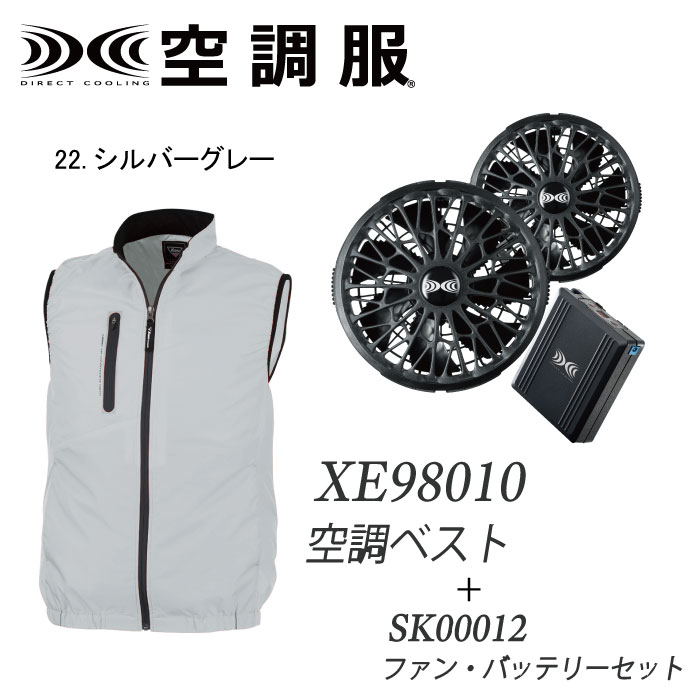 空調服 XE98010 SK00012 空調服 ファン バッテリーセット 作業服 シルバーグレー ジーベック 【送料無料】